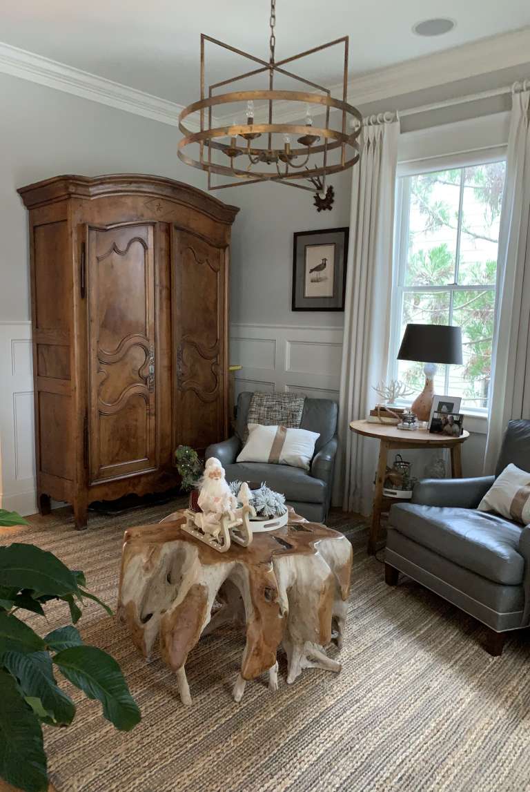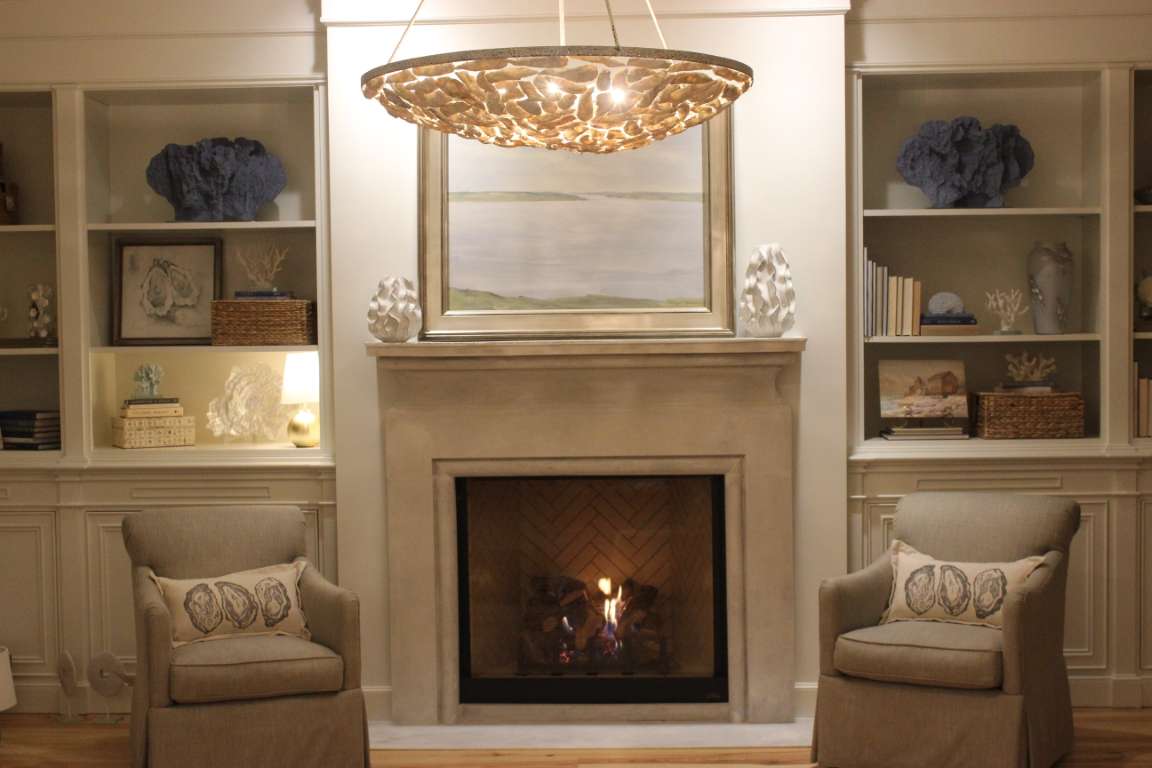A lovely Mt. Pleasant S.C. home on the Wando River The view alone is spectacular so we brought the serene colors and textures inside with this interior upgrade. A neutral wall color was needed to allow the other fabulous selections to be noticed so selected Gracious Greige by Sherwin Williams (HGSW 2456). The client loves oyster shells so it was easy to include a couple of spectacular oyster shell lights by Low Country Originals in the family room and main bedroom.