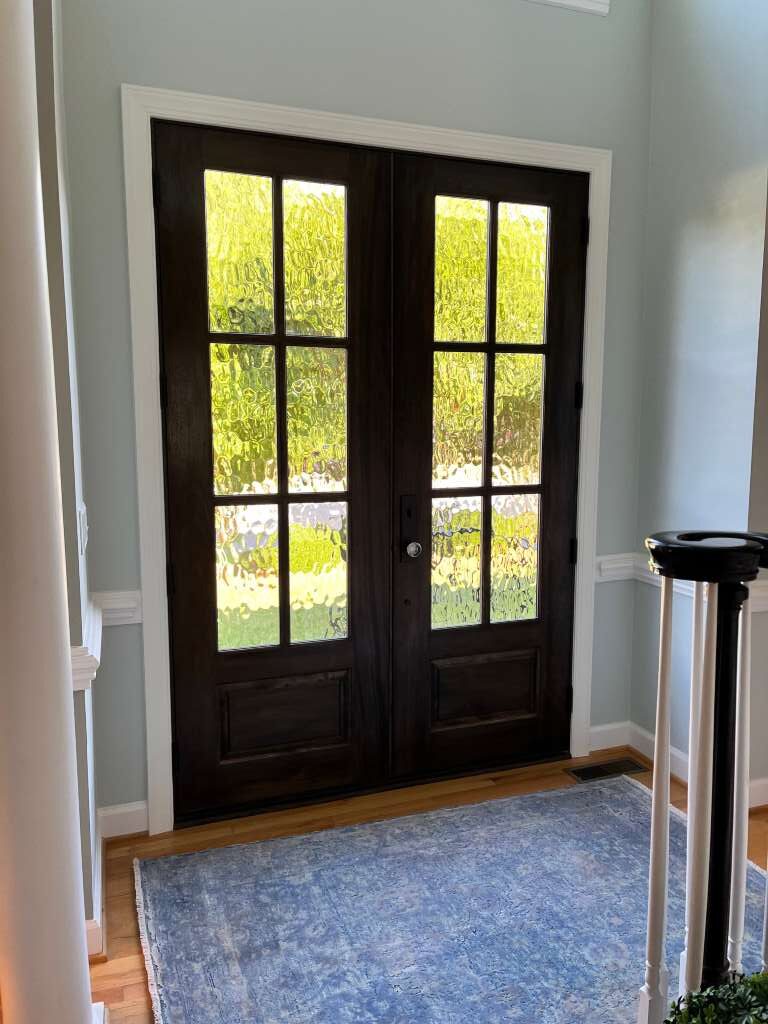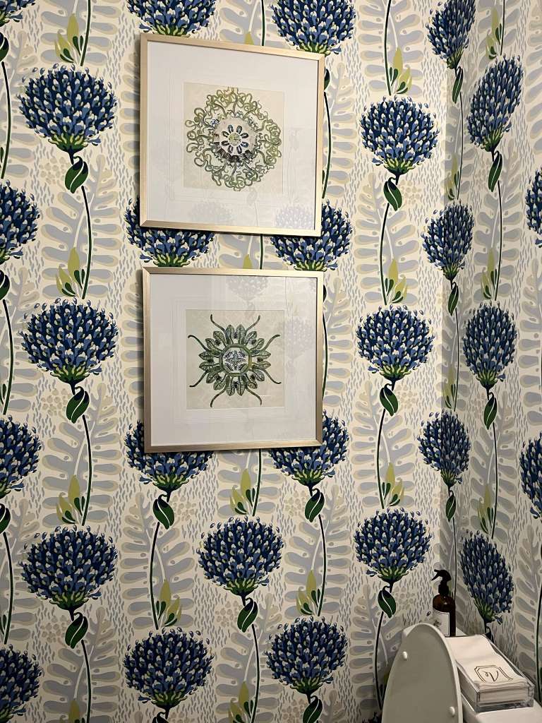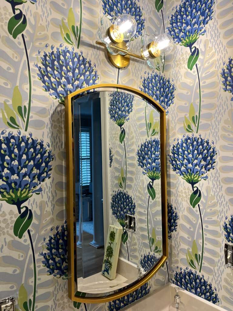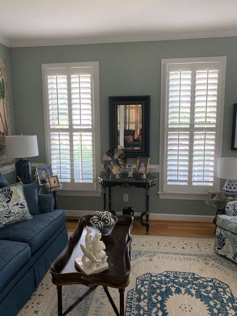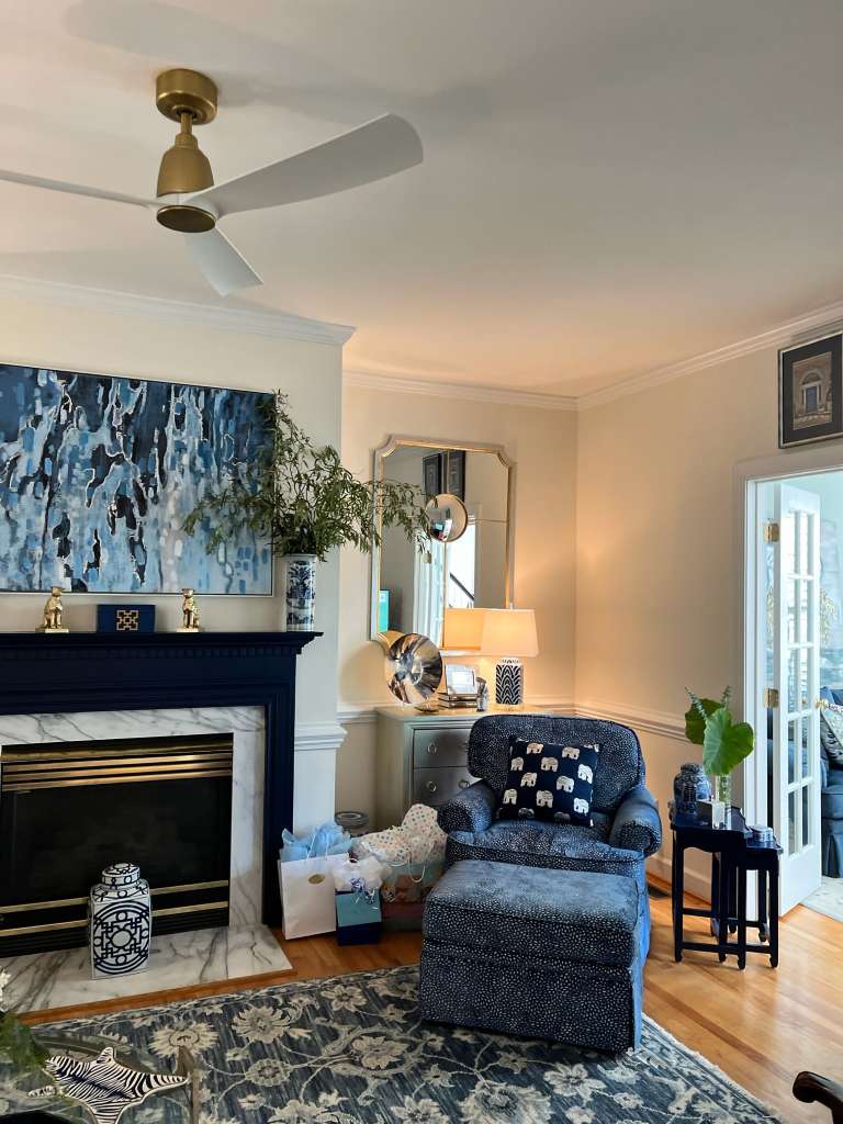 We updated this traditional home with a little color (Winter in Paris – Valspar 5002-1A) and added the clients love of blue and white with furniture, accessories, and artwork.